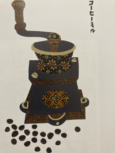 三谷靱彦氏の画である。調べると書籍の装幀や童話の挿絵などもあるようだ。蝋彩画(ろうさいが)を独自に工夫し作られている。蝋彩画とは、切絵に色付けしてから仕上げにロウを施したもので、そうすることで鮮やかな色彩とともに独特の透明感を生み出す独自の発想と工夫によって作られた技法とある。独特で温かみを感じる作品だ。